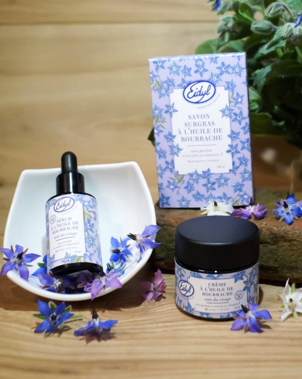 Composée d'un sérum, d'une crème et d'un savon surgras, cette routine complète vous permettra de bénéficier de tout le potentiel de soin de l'huile de bourrache pour votre visage.